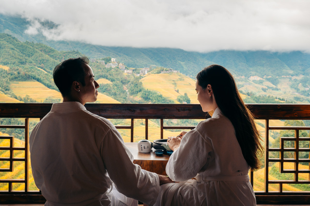 The hero was absolutely the money shot view out of our balcony, where we could sit on an elegant handcrafted wooden table, sipping on Guilin tea and look out the mountain ridge lines and cascading golden terraces. This made it all the more worth it to have stayed a night in the area.